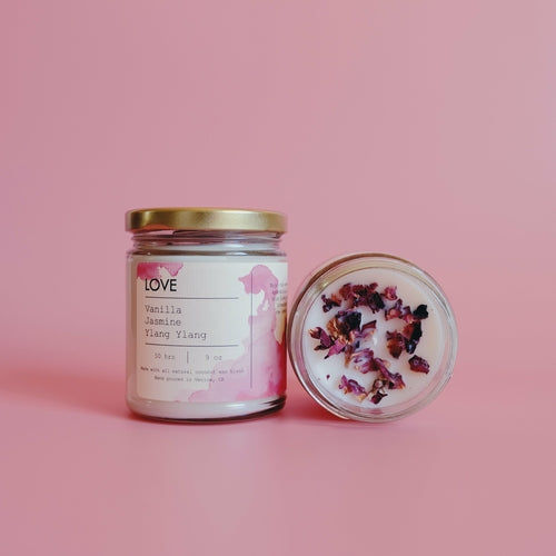 Poured with the intention to open and expand your heart and convey deep love, these candles are blended with loving scents of Vanilla, Jasmine, and Ylan-Ylang in our signature 9oz jars.
